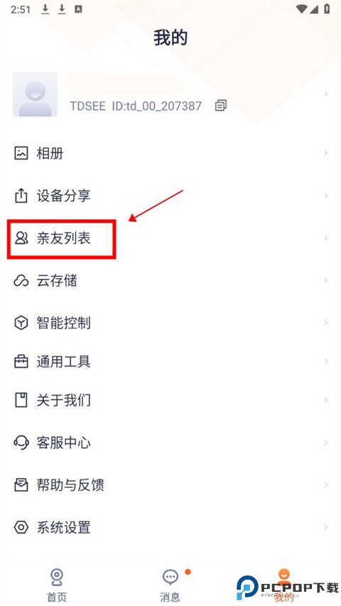 2、到了 “我的” 这个区域之后呢,注意看看有没有一个管理联系人的地方,对,就是那个叫【亲友列表】的功能选项,点它进去。