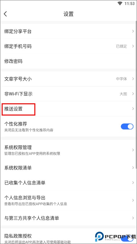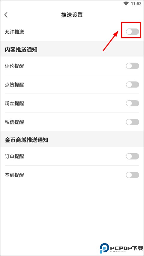3、接着,找到 “推送设置”,点进去就能看到 “允许推送” 的开关,点一下把它关闭就好啦。