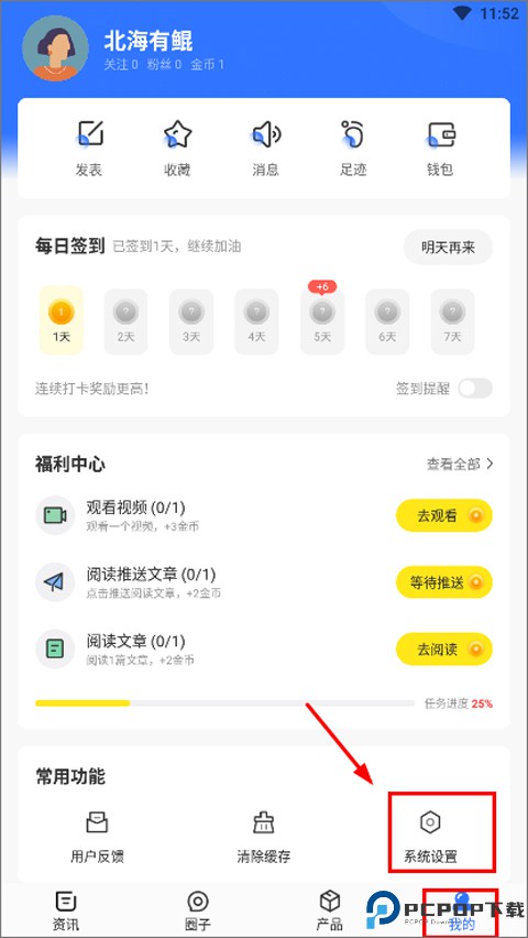2、在个人中心页面里,找到并点一下 “系统设置” 这个选项;