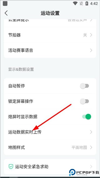 4、也可打开设置中的运动设置,开启运动数据实时上传即可记录跑步数据。