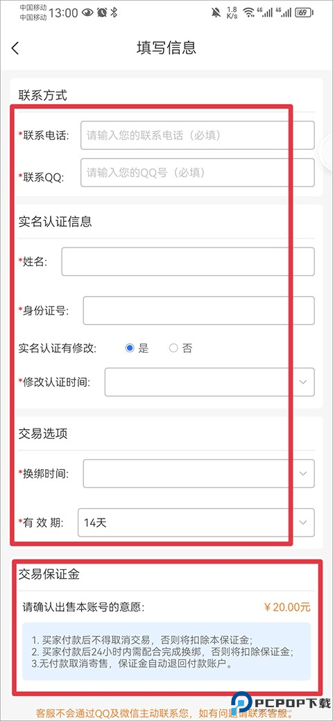 4、接着继续将联系方式、实名认证、交易选项填写完成后,点击提交并完成保证金支付。
