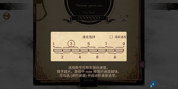 6、数字越大,游戏中音块的掉落速度就越快。你也可以勾选进阶速度开启进阶选项。