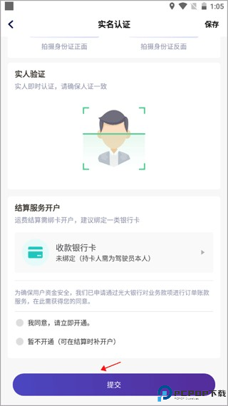 3、上传身份证照片,进行人像采集,绑定银行卡,勾选【我同意,请立即开通】,点击下方的提交按钮就可以了。