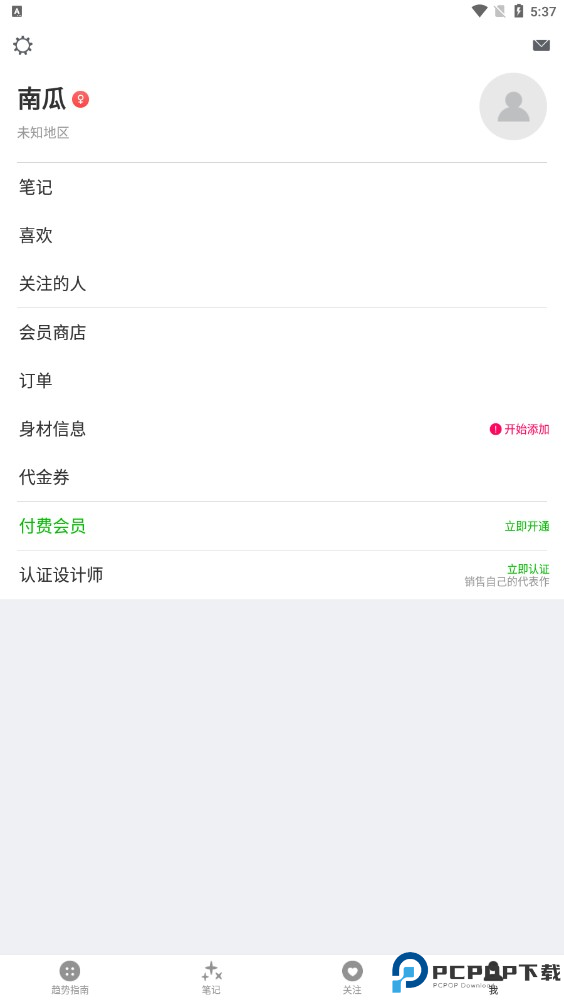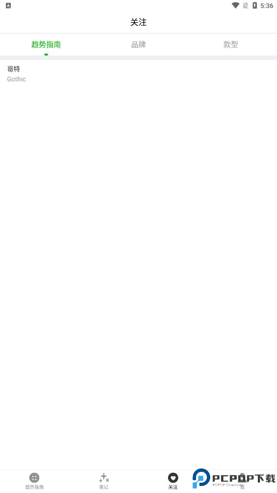 3、登录以后,用户可以在趋势指南、品牌与设计师、款型下面点上小爱心,就可以添加关注,如果有新的内容更新,就可以在【关注】功能栏这里看到。