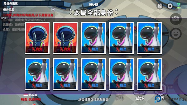 完成所有任务可获得胜利!工程师可以远程直接修复紧急任务,避免飞船设施被毁!但是远程修复机会只有1次。对了,工程师也可以钻管道,但小心被误会成内鬼哦!