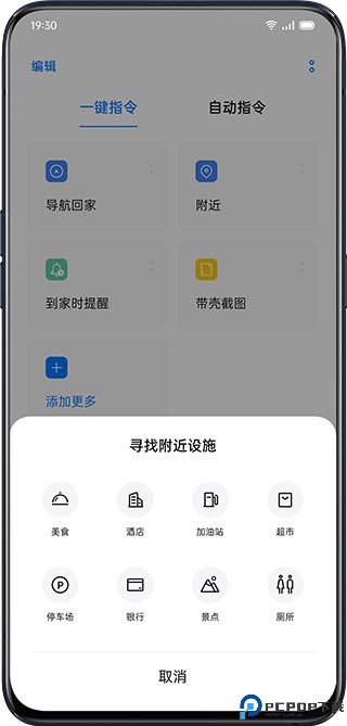 打开「小布指令」,你可以设置「导航回家」、「附近」、「到家时提醒」、「带壳截图」等一键指令。