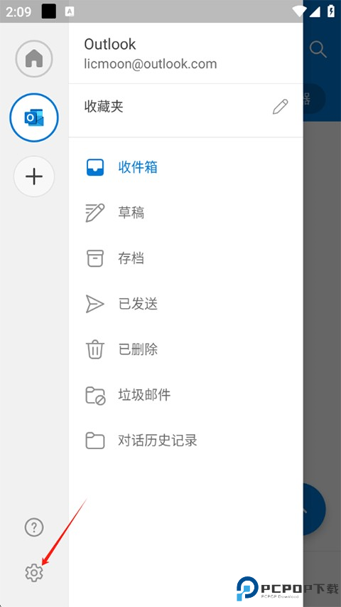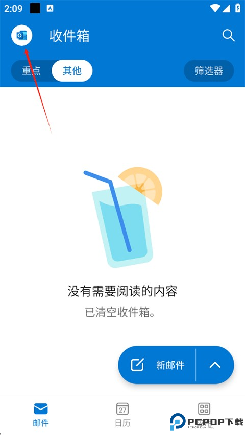 1、打开微软邮箱App,点击左上角Outlook邮箱图标。