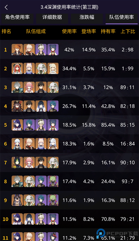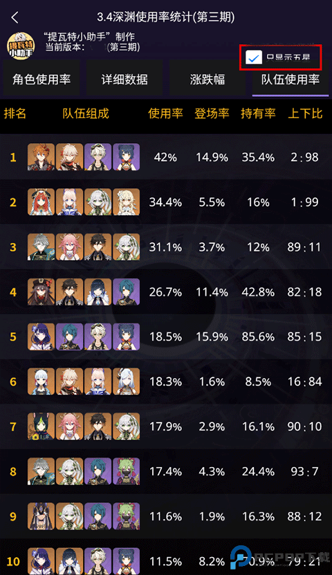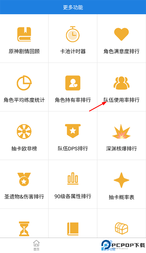 1、首先打开提瓦特小助手官方正版,在更多功能模块点击队伍使用率排行;
