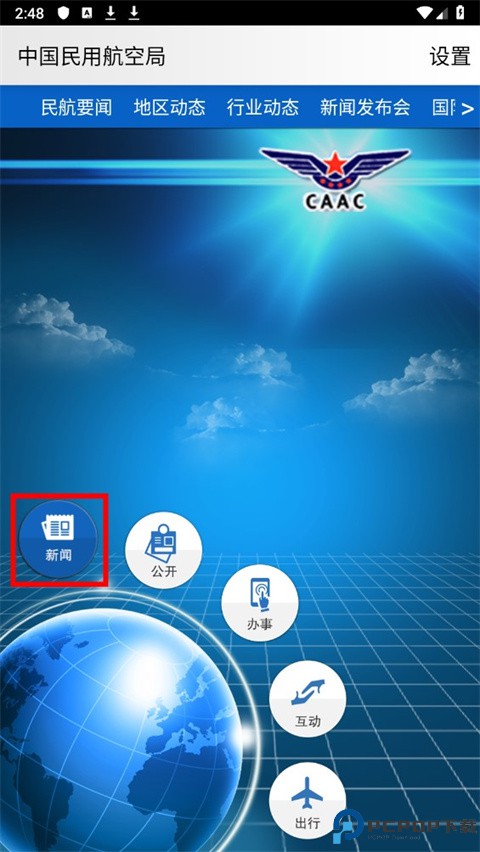 1、下载进入中国民用航空局app,点击新闻栏目。