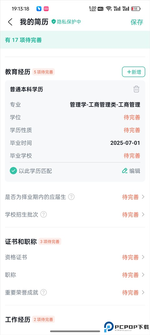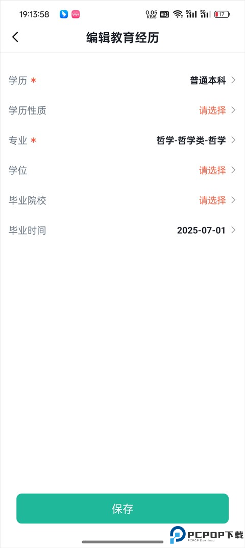 5、最后回到编辑教育经历页面,可以看到专业已经选择成功了,点击下方的“保存”按钮即可修改成功。