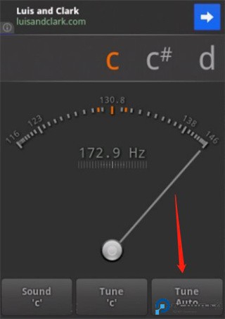 三、接下来散勾一弦,只勾一下就行,指针会摆动起来,待摆动停止后,指针会固定指在一个位置。屏幕上方字母栏正中应当显示“C2”。