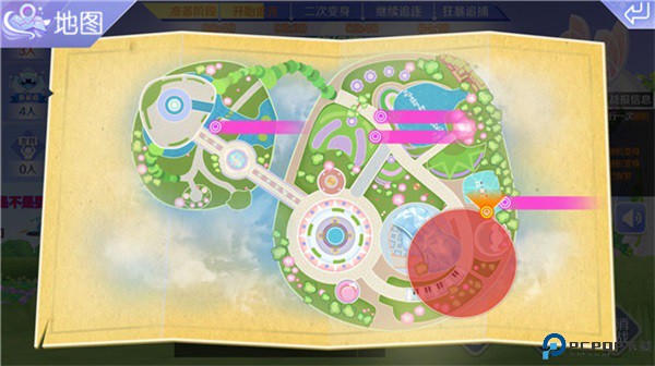 3、在这次的更新过后,躲猫猫玩法增加了躲藏者的难度,以前的躲藏者可以凭借变身物品藏匿在地图角落直到结束也不会被发现,但是这次不一样了,地图中会随机刷新魔法干扰,如果躲藏者躲藏的位置恰好刷新了魔法干扰,在这个区域的躲藏者会变成羊驼,无法跳跃且移动缓慢,所以躲藏者遇到这种情况,需要及时出这个圈,以免被追捕者抓到。而追捕者,在魔法区域则不会有干扰,因此可以打开左上角的小地图,去魔法干扰区域追捕没有及时出圈的躲藏者。躲猫猫玩法在这次更新后增加了小地图功能,可以像诸神黄昏玩法一样,在小地图中查看同伴的位置和魔法区域的刷新位置,点击游戏界面左上角的小地图位置即可看到全局。是不是更人性化了一些呢?