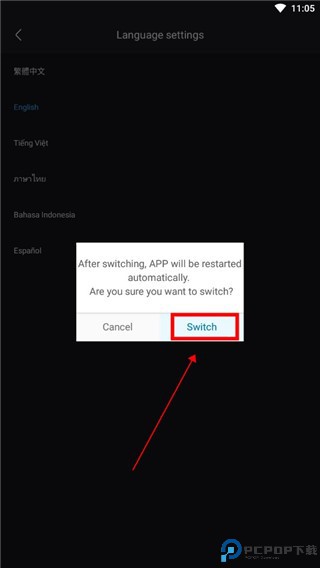 5、弹出选项后,点击右边的【Switch】切换,然后等待app重启即可完成设置。
