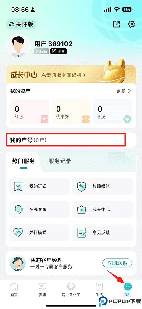 1、打开网上国网APP,进入“我的”页面,找到并点击“我的户号”选项。