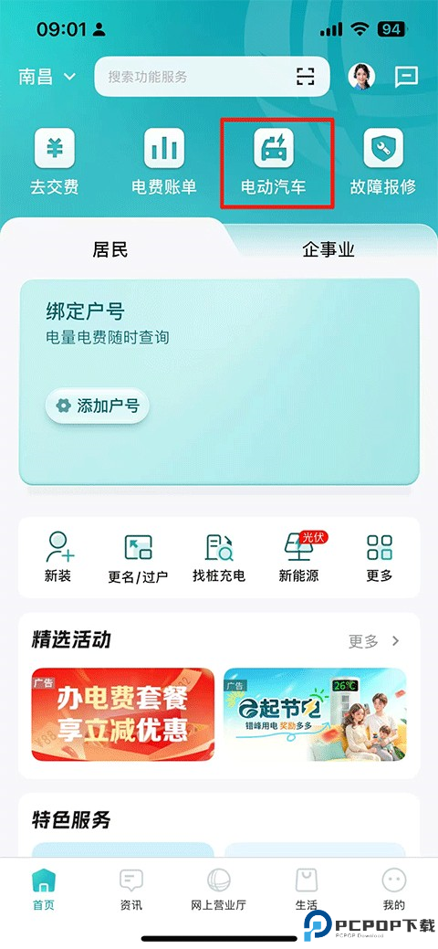 1、打开国家电网APP,找到顶部栏的“电动汽车”选项。