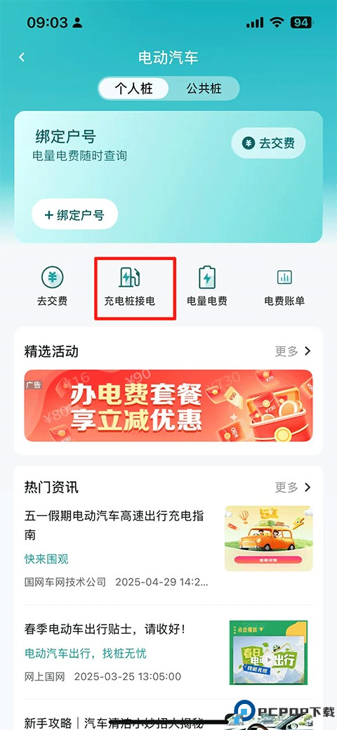 2、然后选择下方的“充电桩接电”。