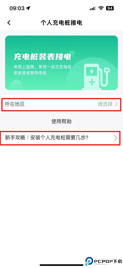 3、点击下方的所在地区,详细的安装个人充电桩的方法也可以点击下方的新手攻略。