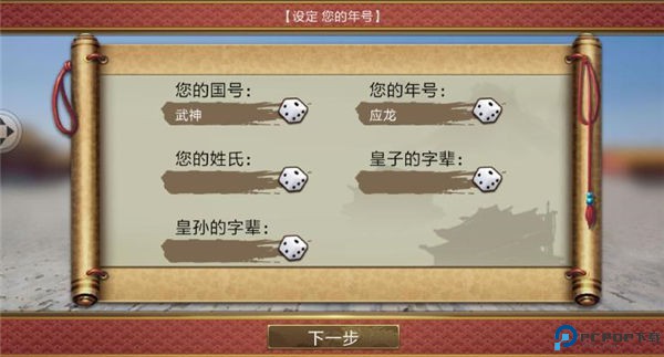 三、开局可以设定【国号,年号,姓氏,皇子、皇孙的字辈、妃子】。
