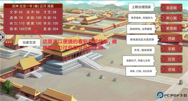 由于皇帝年轻的时候身体好,只要健康不低于50,可以不用到金龙殿休息,将精力集中在内政上。