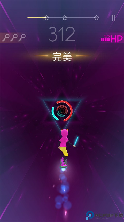 5、当玩家遇到带有颜色的光环就需要注意了,这是玩家需要击打的颜色会发生改变,击打的颜色就是光环的颜色。