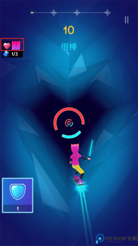 4、左上方的是血条,失误一次会消耗一格血条,血条见底游戏就会结束。