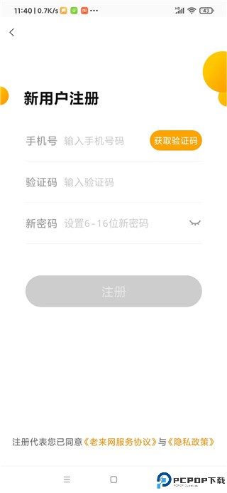 2、如果没有注册过,点击『新用户注册』。输入手机号、验证码,设置好密码。一定要记住密码!!!