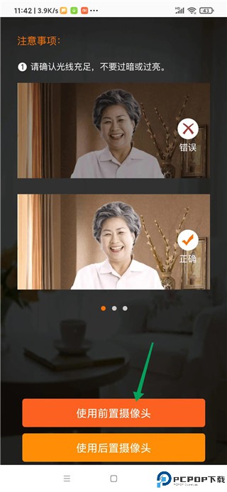 7、自己认证选择『前置摄像头』,家人认证选择『后置摄像头』。