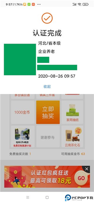 9、认证成功后会弹出『认证完成』信息,此时可以截图,发给社保。