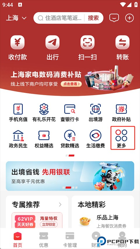 1、下载并安装云闪付APP,然后打开该应用进入首页。
