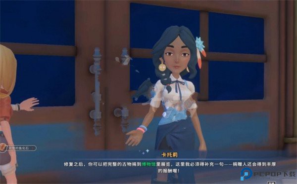 2、找到卡莉托后与她交谈,得知博物馆中有一个【古物修复机】,能够修复文物碎片。