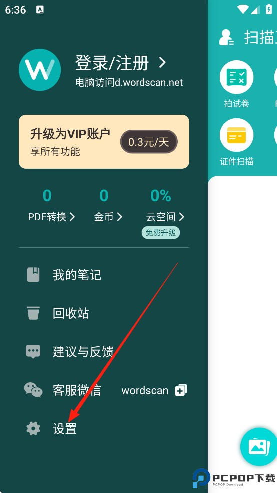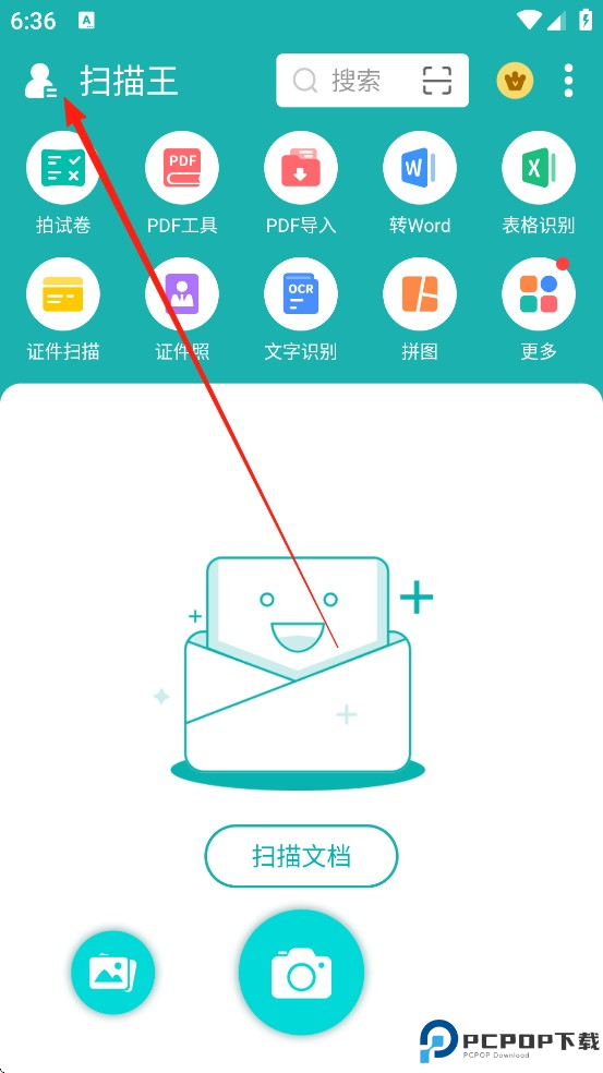 1、打开扫描王App,点击左上角头像