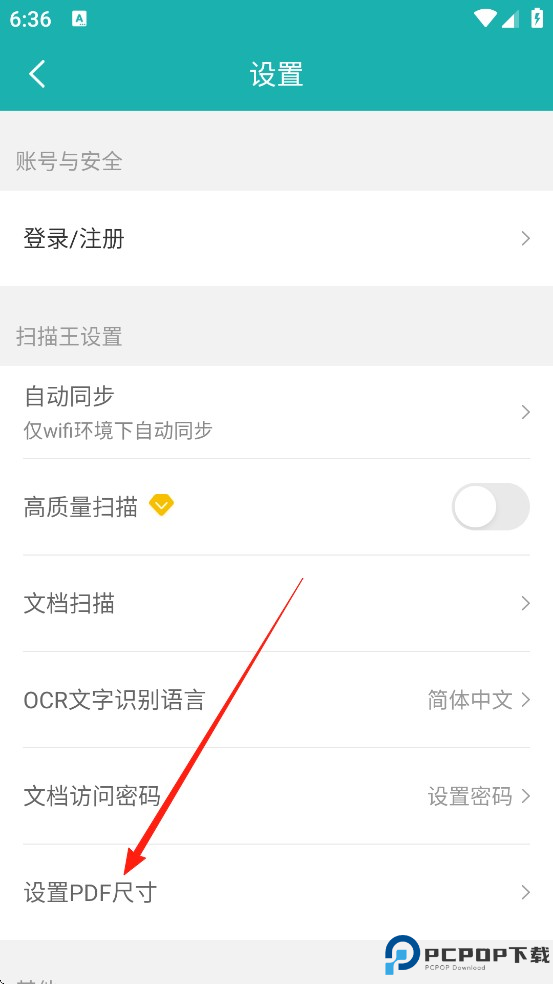 3、点击【设置PDF尺寸】