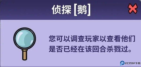 侦探 - 只有一次你可以检查玩家是否在游戏中杀死了某人。
