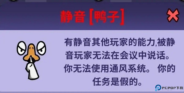 模仿鹅 - 其他鸭子会像鸭子一样看到你,但会杀了你(是好人,但混入坏人阵营迷惑对手)。