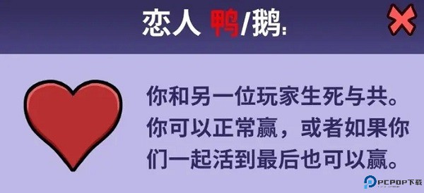 恋人 - 与另一名玩家有联系,如果他们都是最后一个幸存者,他们将一起获胜。
