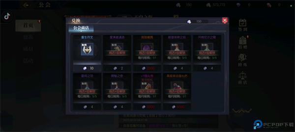 5、公会商店,由会长升级,等级越高,可以购买更珍惜的道具,每日白嫖一个体力药水,每月白嫖一个橙色使魔(需要商店等级达到3级),强化药水不限购不限次,按需购买,仅公会商店产出