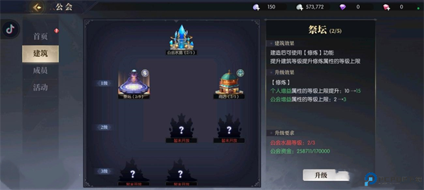 6、公会建筑,由会长升级,需要消耗公会资金,优先升级主城,主城等级越高,公会可以接纳更多成员