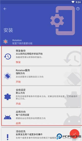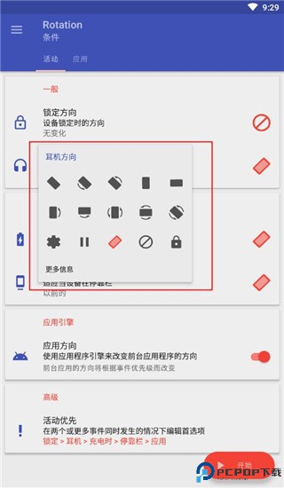 7、另外,其中还支持自定义设置在呼叫、锁定、听歌等多种情况的屏幕方向设置;