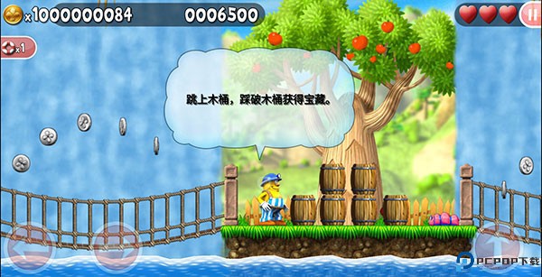 6、冒险中有诸多奖励等待发现,跳上木桶并破坏它们即可获取宝藏。