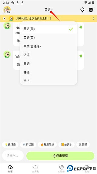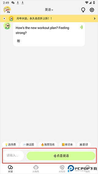 多场景对话模式:涵盖日常、商务、考试等多类情境,提升实际应用能力。