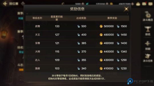 ②、PVP的奖励比较固定,每日奖励的泰拉并不多,主要来源是赛季奖励,排位赛为月赛季,其他为周赛季,如果肝度比较大的玩家可以冲排名,排名越高奖励越多,一般来说,一般玩家每个号每月都能获得约10万泰拉。冲排名玩家可以获得更多,但是肝度和收益不成正比,建议大号可以冲一冲,小号就算了。
