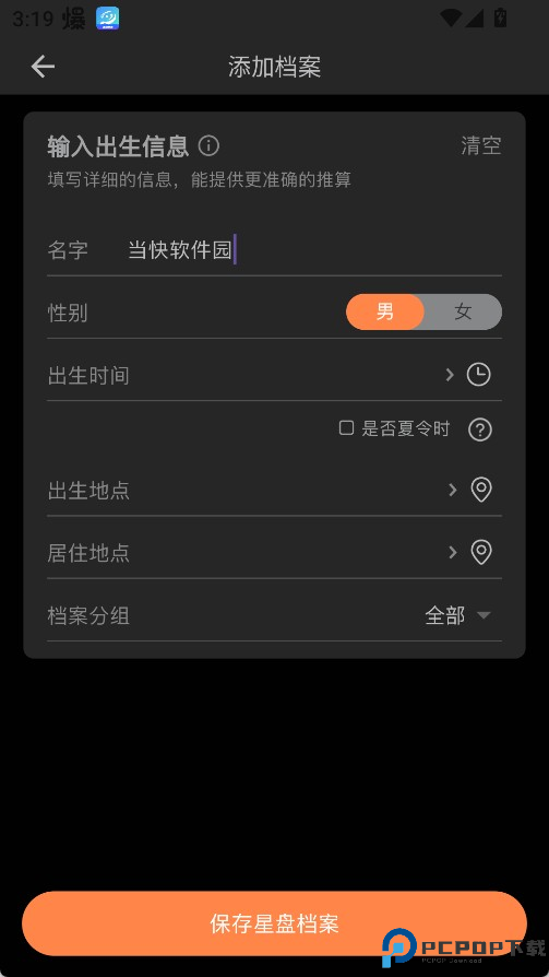 3、直接点击出生信息的文字标签,可以直接进入星盘出生信息编辑界面