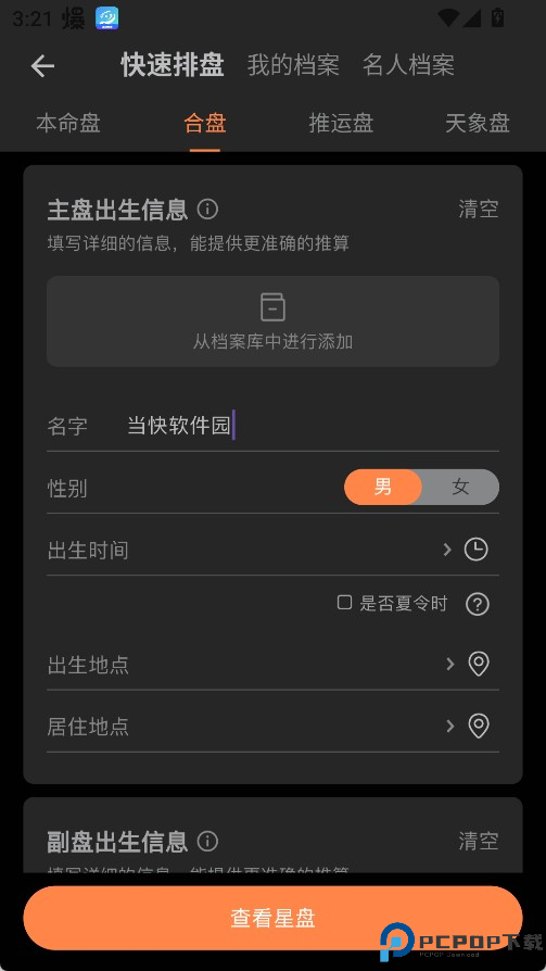 参考上面对应的“如何进行排合盘”流程,只不过在星盘档案页面,静静选择一个档案即可