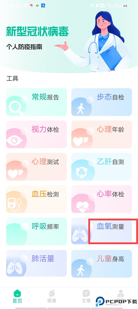 1、点击进入软件首页,里面为用户提供很多工具,如血压检测、心率体验、乙肝自测、血压测量等等功能,我们点击血压测量;