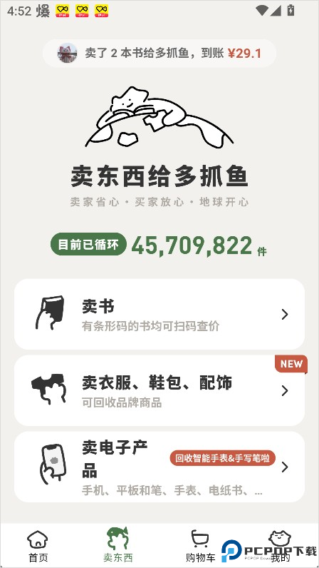 多抓鱼二手书平台下载是个专注于二手书流通的手机应用,帮助用户轻松买卖闲置图书。平台对书籍进行严格筛选与质检,确保售出的每本书都干净可读。用户不仅可以低价购买想要的书,还能将闲置书卖出,获得一定收益。通过循环使用的方式,多抓鱼二手书平台让阅读更环保、更实惠,同时也让爱书人之间形成了一个共享的书籍社区。