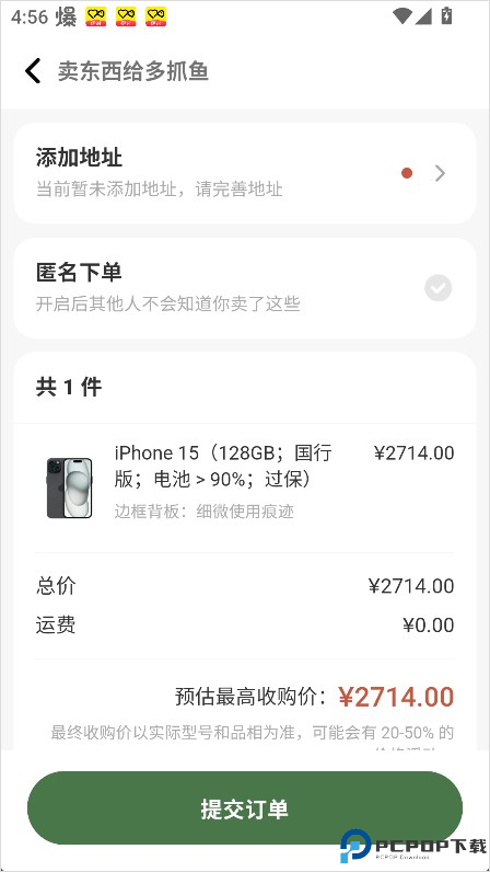 9、最后确认信息,点击【提交订单】即可完成出售流程。
