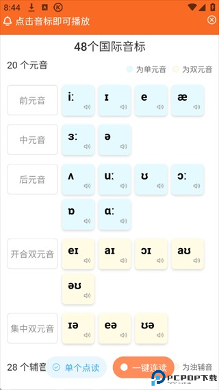 英语音标发音表下载是个专为英语学习者打造的工具,帮助用户掌握国际音标的发音与拼读规则。英语音标发音表软件内含详细的音标分类讲解和真人发音示范,适合初学者和想提升口语准确度的学习者。通过循序渐进的学习方式,用户能够逐步掌握正确的语音技巧,为词汇和口语打下坚实基础。