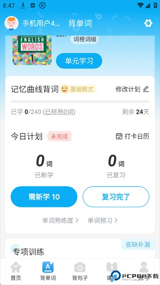 4、当你感觉自己学的很OK,回到首页点击背单词