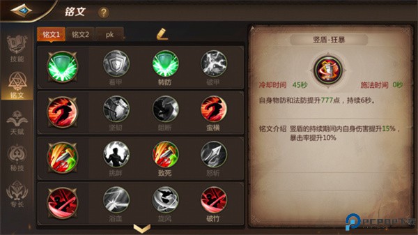 狂暴的就不多说了有钱的玩家可以试试搞两套宝石和装备。红色主打力量副穿透攻击。黄色主耐力副防御(这里的防御以法防位置pvp还是法系打的疼)。蓝色宝石主暴击副格挡韧性,自己看着办。