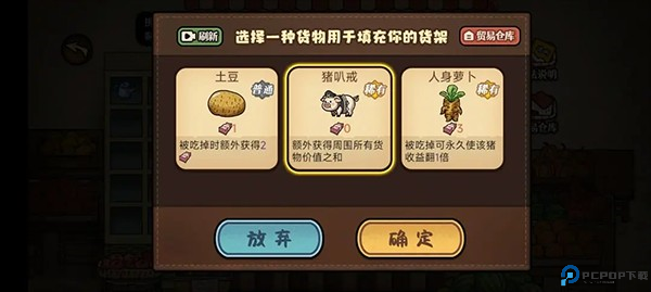选卡建议:前期有金卡选金卡,没金卡往下盘,尽量不要选水果,那个需要吃水果的金猪才能削,拿了粑粑权杖之后无脑选蔬菜,然后拉屎变金,金屎卖钱